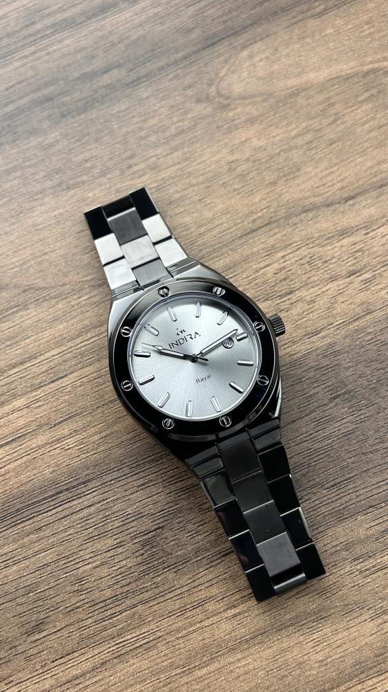 ساعة رجاليه انديرا ملفته بلون رمادي