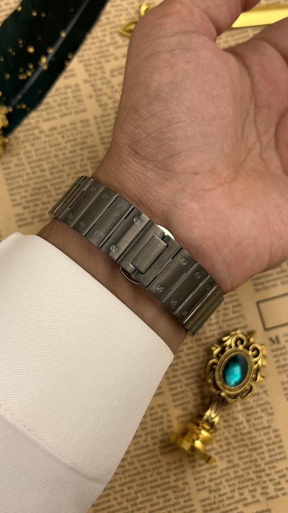 تأتي الساعة بلون رمادي معدني أنيق مع سوار متكامل من الفولاذ، وتفاصيل مستوحاة من التصاميم الكلاسيكية المربعة لكن بلمسة عصرية ملفتة. ميناء الساعة المنقوش يضيف بعدًا بصريًا فريدًا وأناقة لا تُضاهى، فيما يوفر السوار المريح ثباتًا وأناقة في آنٍ واحد.