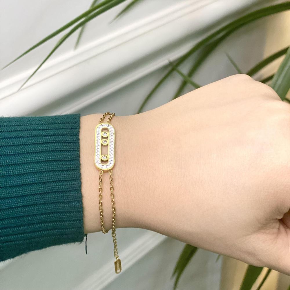 أما الإسوارة الذهبية فهي مصممة بعناية فائقة، ناعمة وأنيقة بتفاصيل أنثوية جذابة. فصوص الزركون اللامعة تمنحك لمسة فخامة تدوم، وتجعلها إضافة مميزة إلى إطلالاتك أو هدية راقية لمن تحبين.