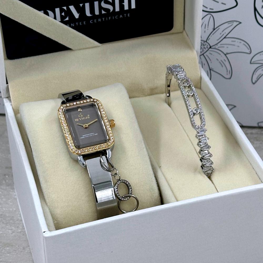 الذي يجمع بين ساعة يد نسائية بتصميم راقٍ وإسوارة أنثوية مميزة تضيفان لمسة من الفخامة لكل إطلالة.