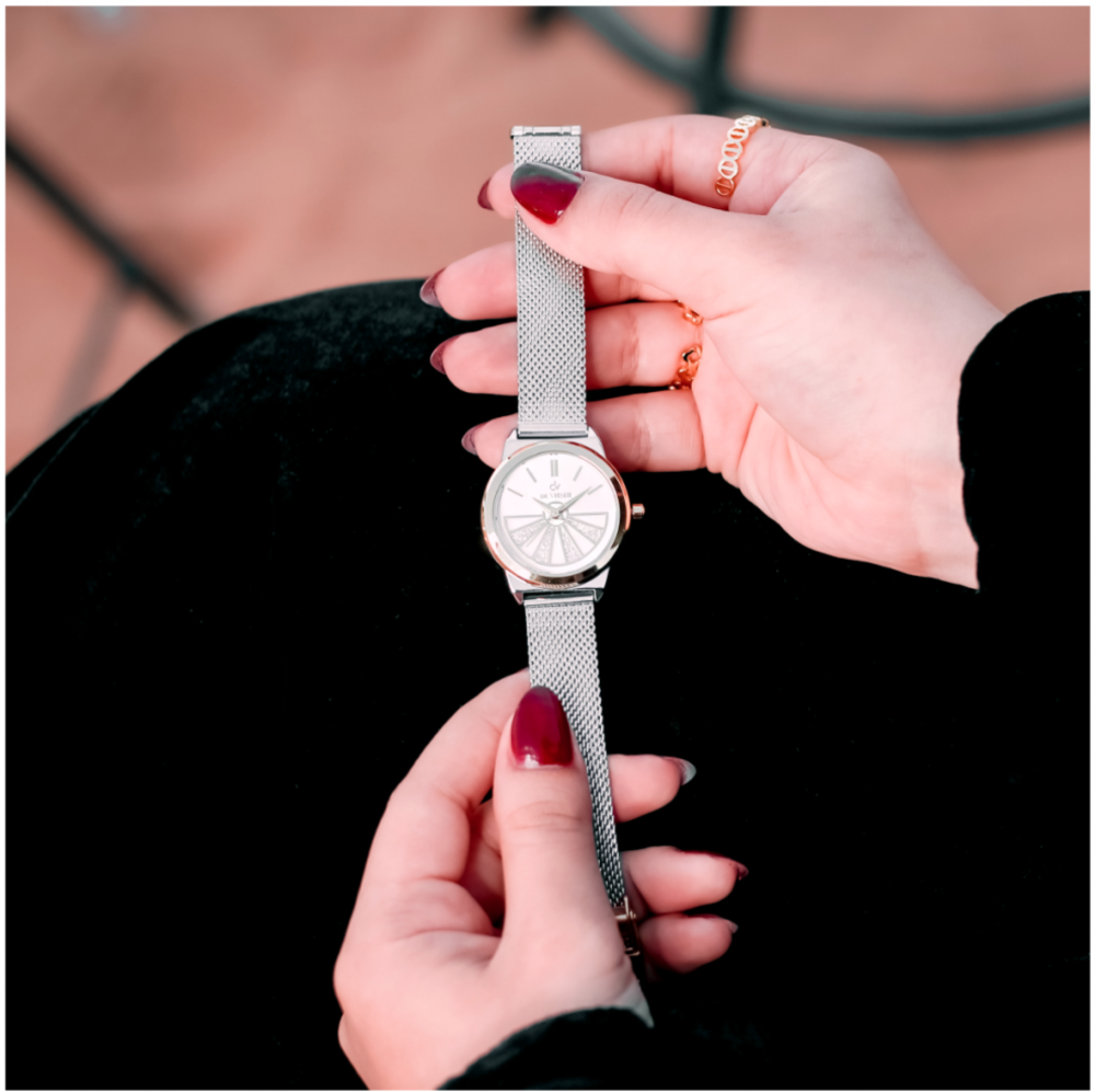 ساعة ديفوشي الشبكية الفضية تأتي بتصميم عصري وميناء بتفاصيل ناعمة، مع حزام Mesh مريح وخفيف على المعصم، تليق بجميع الأوقات والمناسبات.