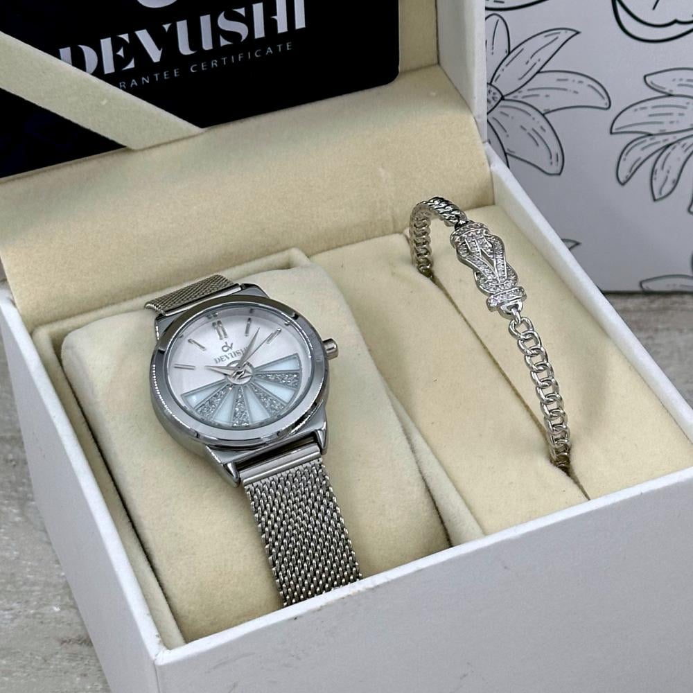 طقم ديفوشي الفضي – لمسة أنثوية تنبض بالفخامة اجمعي بين الرقي والبساطة في طقم نسائي مميز من متجر نيلوفر. ساعة ديفوشي الشبكية الفضية تأتي بتصميم عصري وم...
