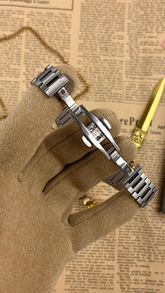 تأتي الساعة بسوار متين من الاستيل الفضي، مع ميناء عربي بالأرقام الشرقية يمنحها طابعًا فريدًا يعكس الأصالة والتميز.