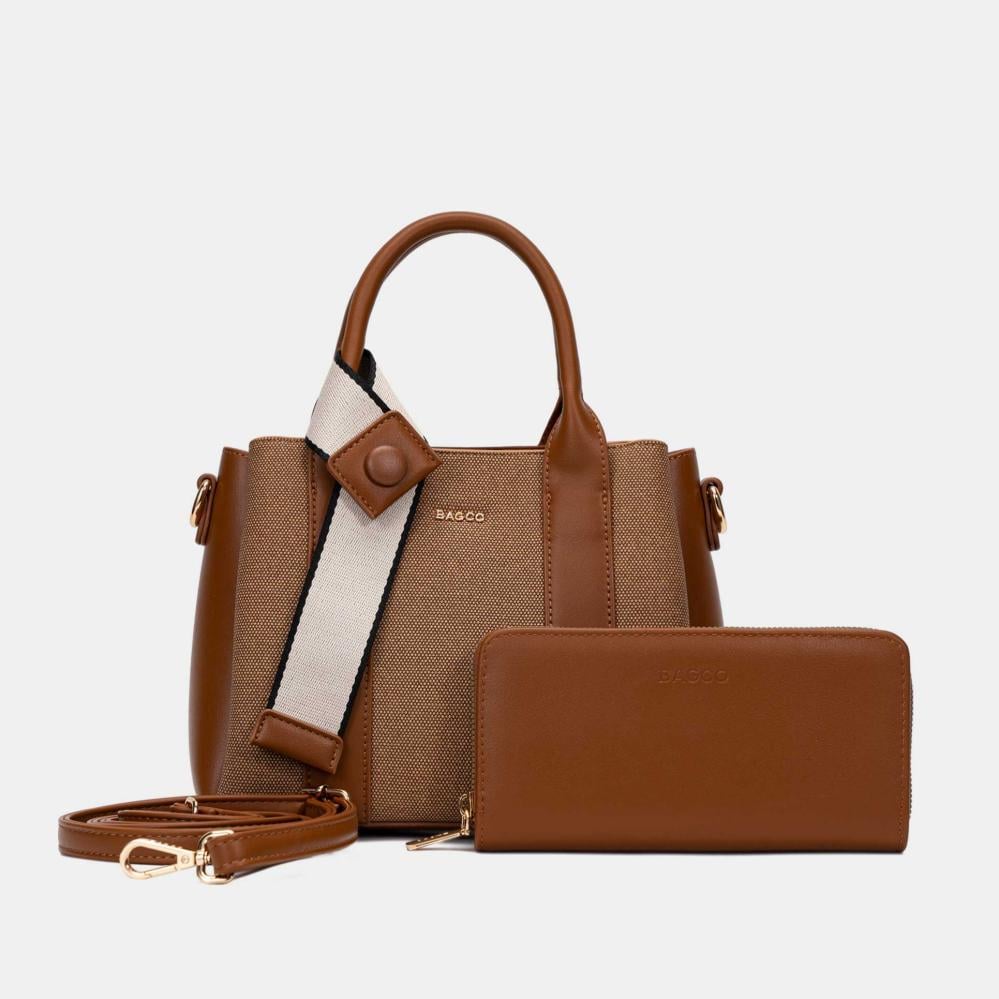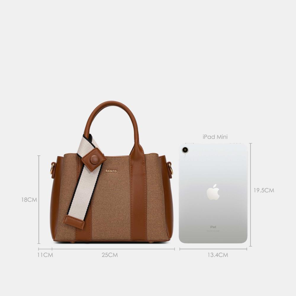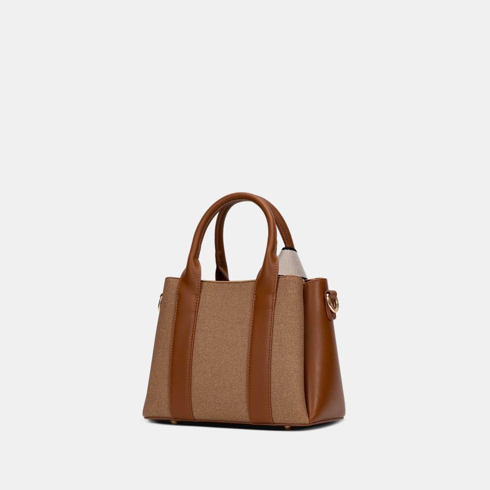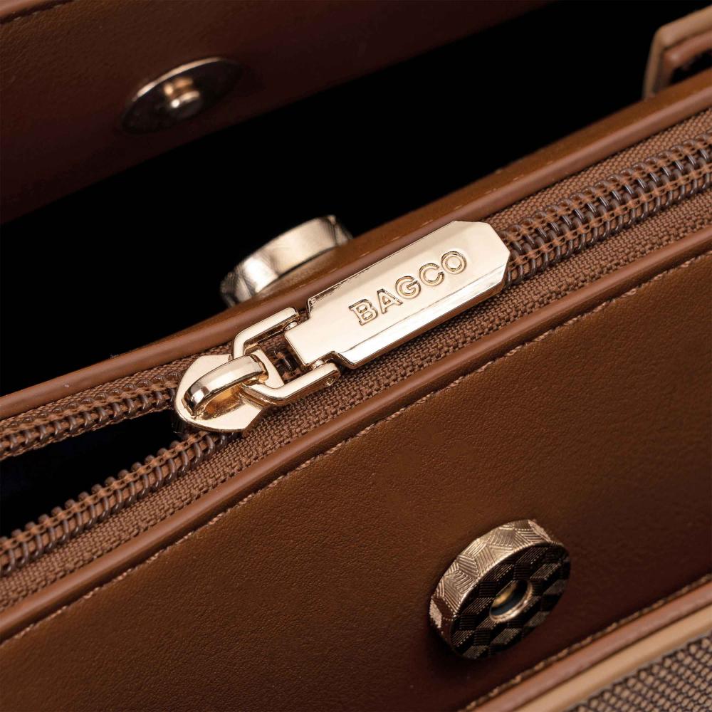 اكتشفي أناقة التصميم العملي مع شنطة اليد النسائية من BAGCO باللون البني الجذاب. مصنوعة من مزيج فاخر من الجلد الصناعي والقماش المنسوج، بتفاصيل دقيقة تبرز الذوق الرفيع. تتميز الحقيبة بحجم متوسط مثالي للاستخدام اليومي والخروجات الرسمية، وتوفر مساحة منظمة مع سحاب علوي لحماية محتوياتك وحزام كتف قابل للتعديل يمنحك راحة تامة في الحمل.