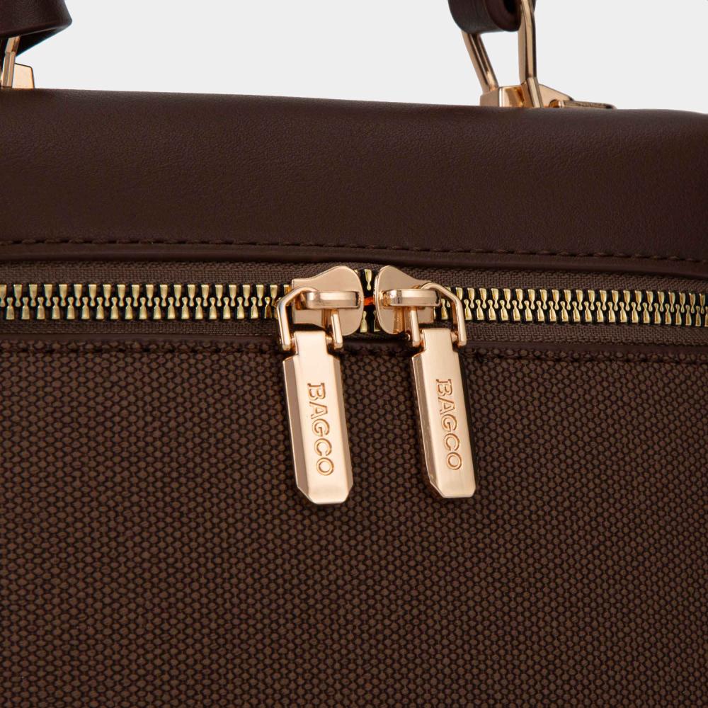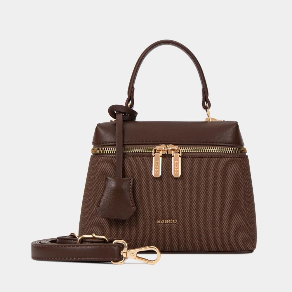 اكتشفي أناقة التصميم العملي مع شنطة اليد النسائية من BAGCO باللون البني الجذاب. مصنوعة من مزيج انيق من الجلد والقماش ذو الجودة العالية و بتفاصيل دقيقة...