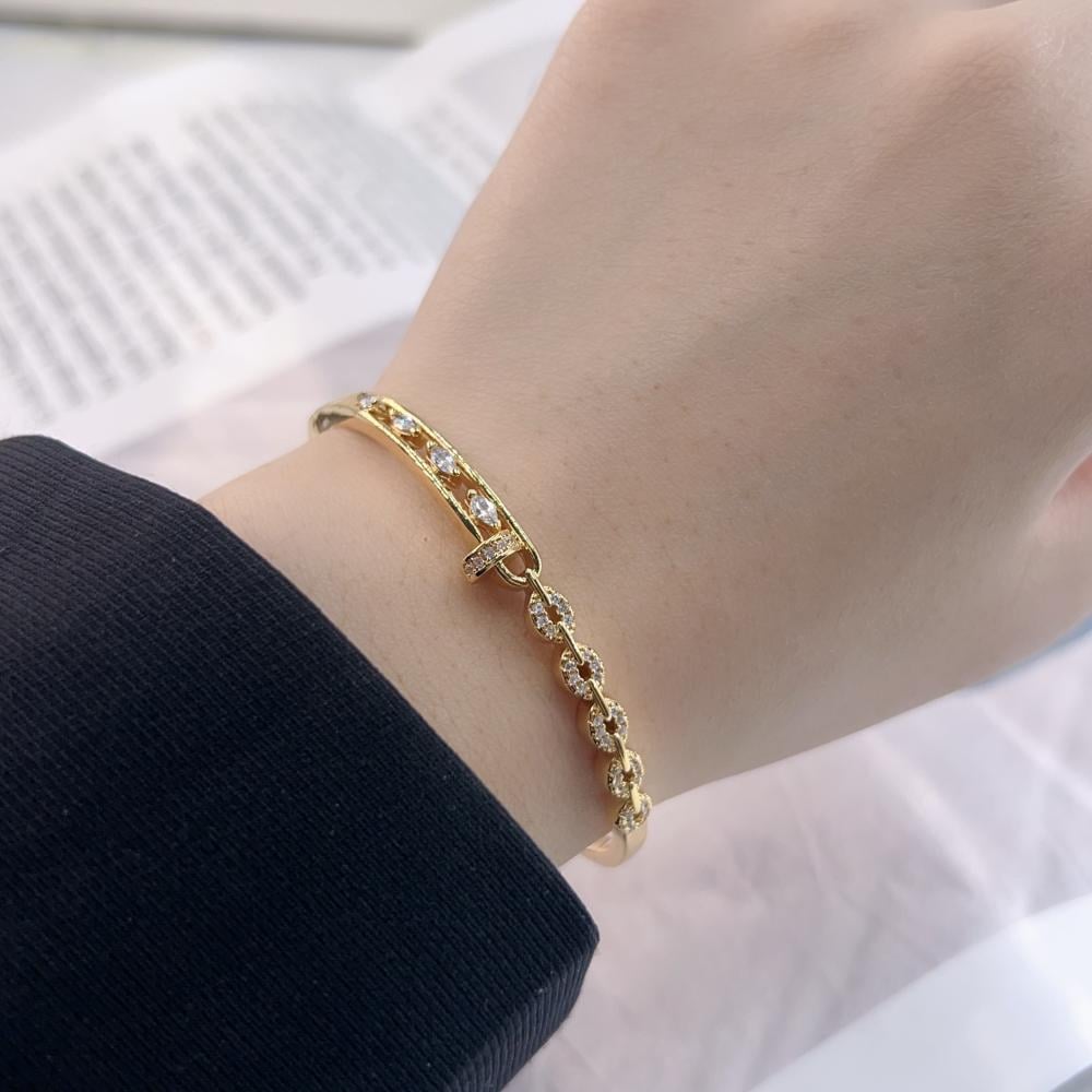 تألقي بإطلالة راقية مع هذه الإسوارة النسائية الفاخرة باللون الذهبي، والمزينة بفصوص زركون براقة تضفي لمسة من الفخامة والتميز. تم تصميمها بعناية فائقة لتناسب مختلف الأذواق والمناسبات، سواء للإطلالات اليومية أو المناسبات الخاصة.